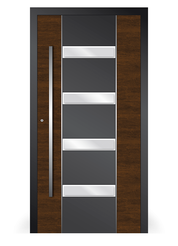 Standardno ponujamo vrata v različici Exclusive. Dvostranske plošče so debele 77 mm in imajo zelo dober koeficient prenosa toplote (Ud = 0,61 W / m 2 K). Po želji izdelujemo tudi vrata Despiro v dveh drugih različicah:
