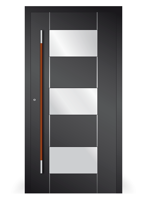 Standardno ponujamo vrata v različici Exclusive. Dvostranske plošče so debele 77 mm in imajo zelo dober koeficient prenosa toplote (Ud = 0,61 W / m 2 K). Po želji izdelujemo tudi vrata Despiro v dveh drugih različicah: