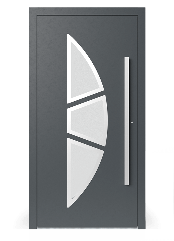 Tehnologija izdelave aluminijastih vrat Despiro je omogočila učinek enakomerne površine. Tu je krilo skrito za okrasnimi ploščami. Na voljo imamo široko paleto izvedb plošč – z zasteklitvijo, aplikacijami iz nerjavečega jekla ali okrasnim rezkarjem.