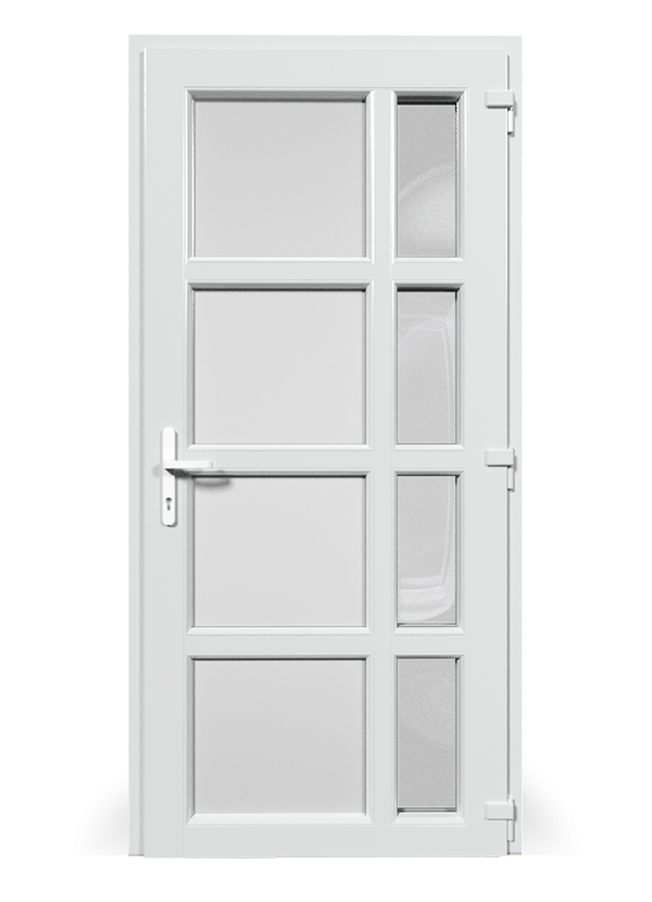PVC profile priznanih dobaviteljev uporabljamo pri izdelavi   vhodnih vrat. Na ta način kupec prejme najboljše toplotne parametre in energijsko učinkovitost okna ter vse prednosti zastekljenega vhoda.