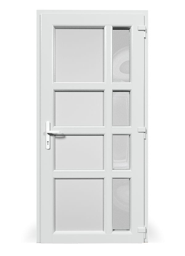 PVC profile priznanih dobaviteljev uporabljamo pri izdelavi vhodnih vrat. Na ta način kupec prejme najboljše toplotne parametre in energijsko učinkovitost okna ter vse prednosti zastekljenega vhoda.